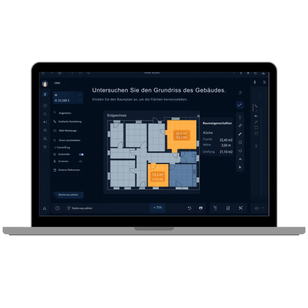 Die Erkennung basiert auf ÖNORM/DIN-konformen Regeln. Maßstab und Flächen können automatisch oder manuell überprüft und korrigiert werden – für maximale Genauigkeit.
